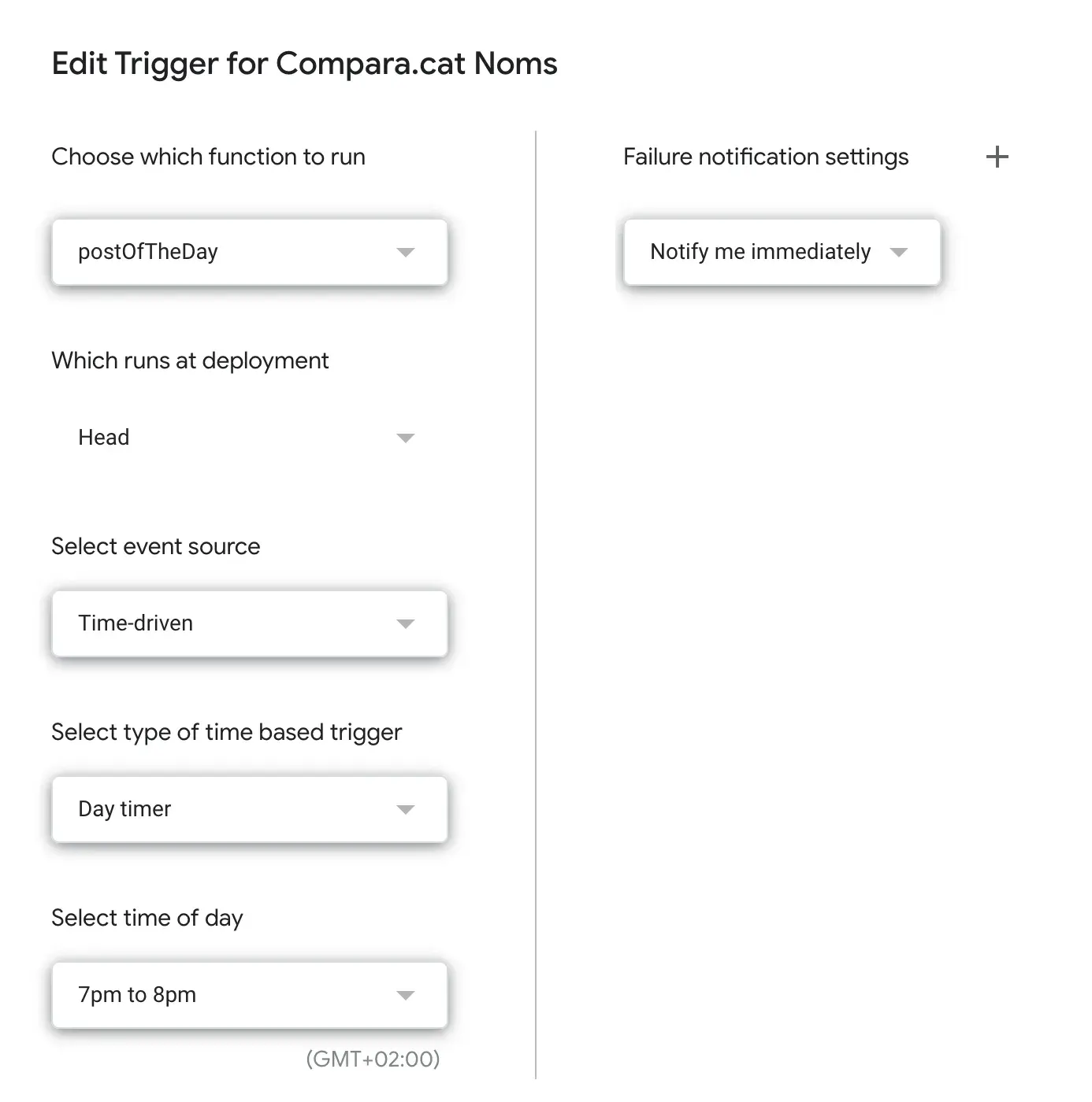 Now, we just need to create an Apps Script trigger to run the postOfTheDay function daily (or whatever frequency you need).